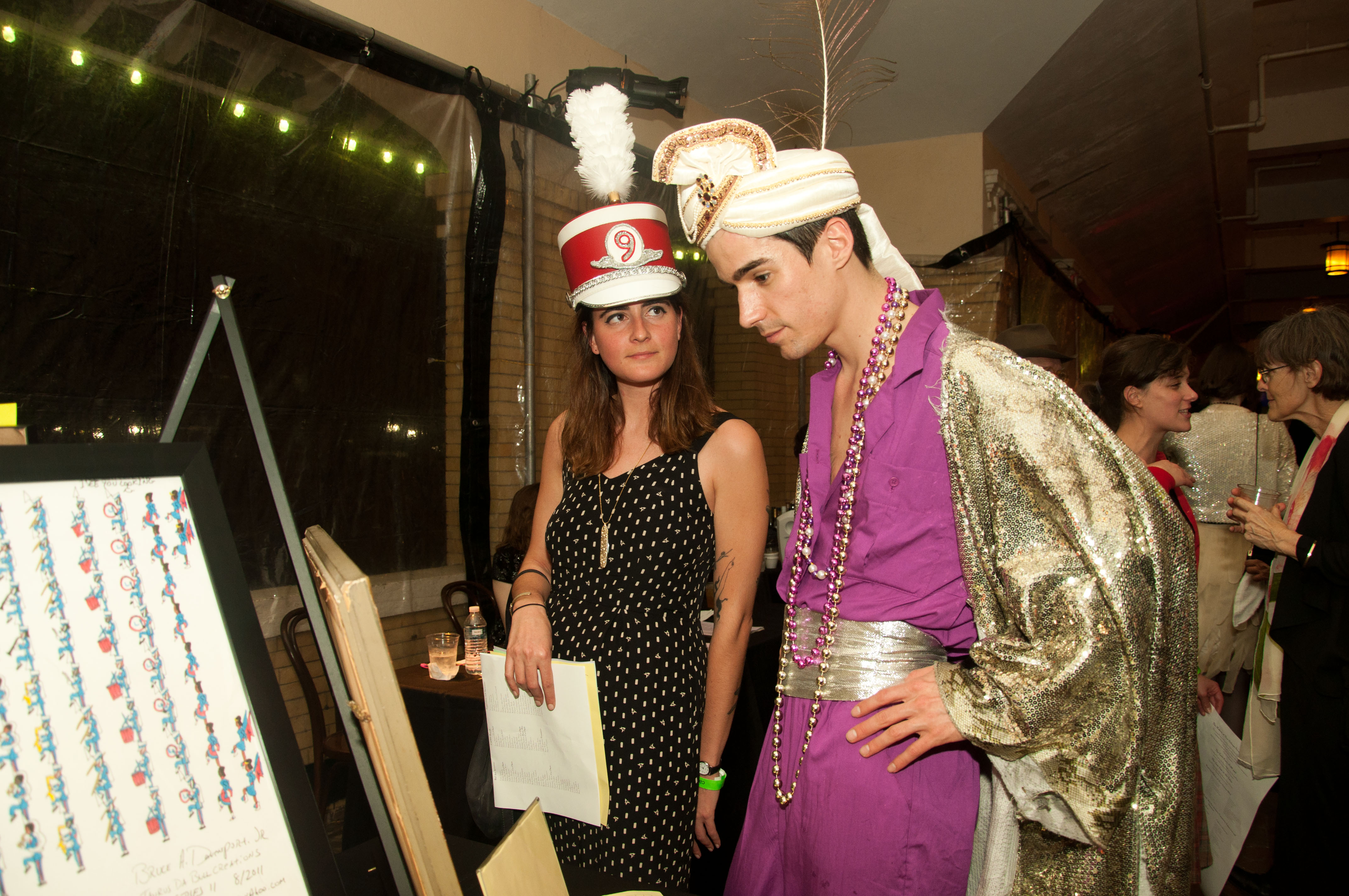 Guests deciding on silent auction items.