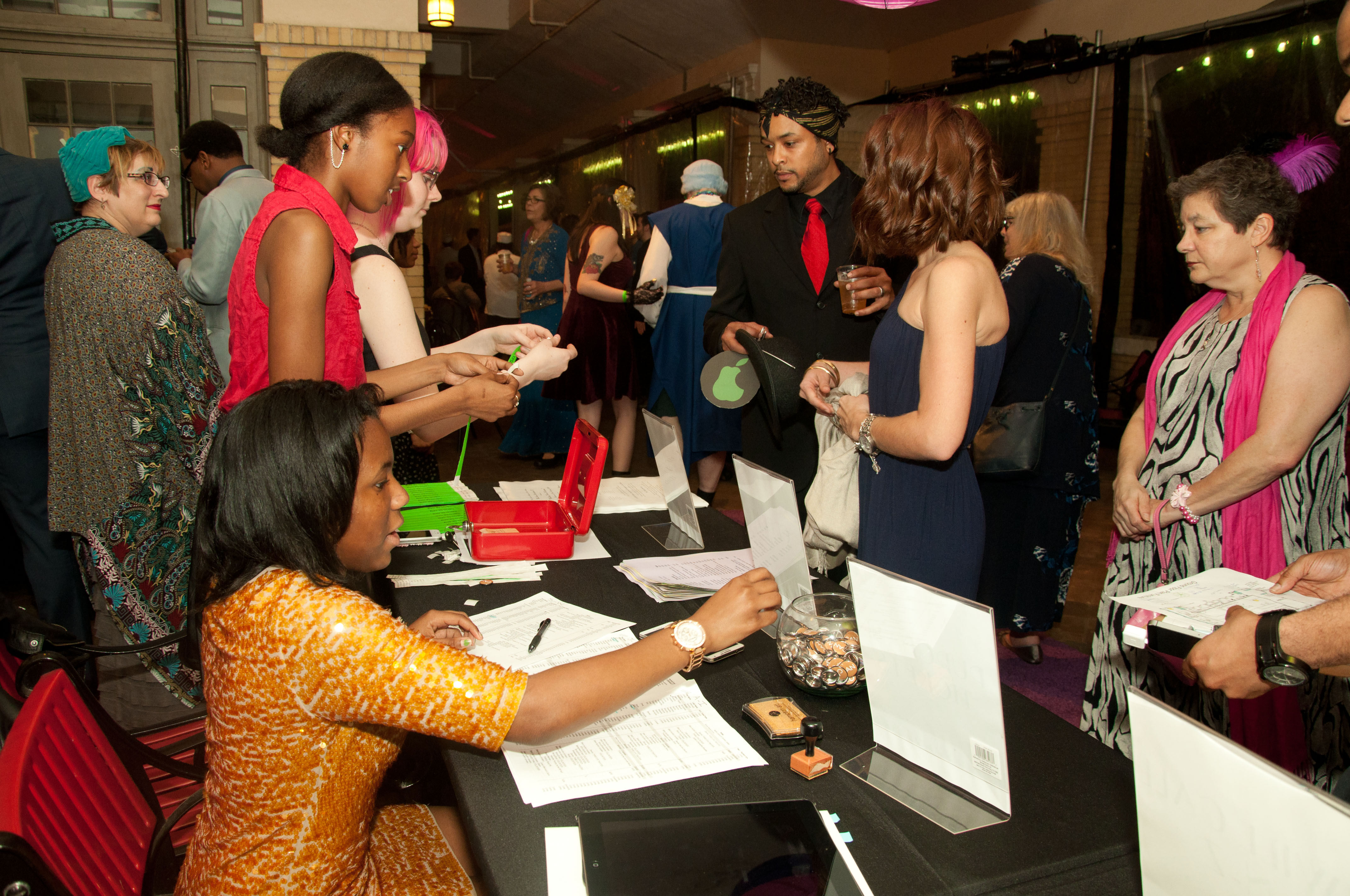 - Volunteers greet guests.