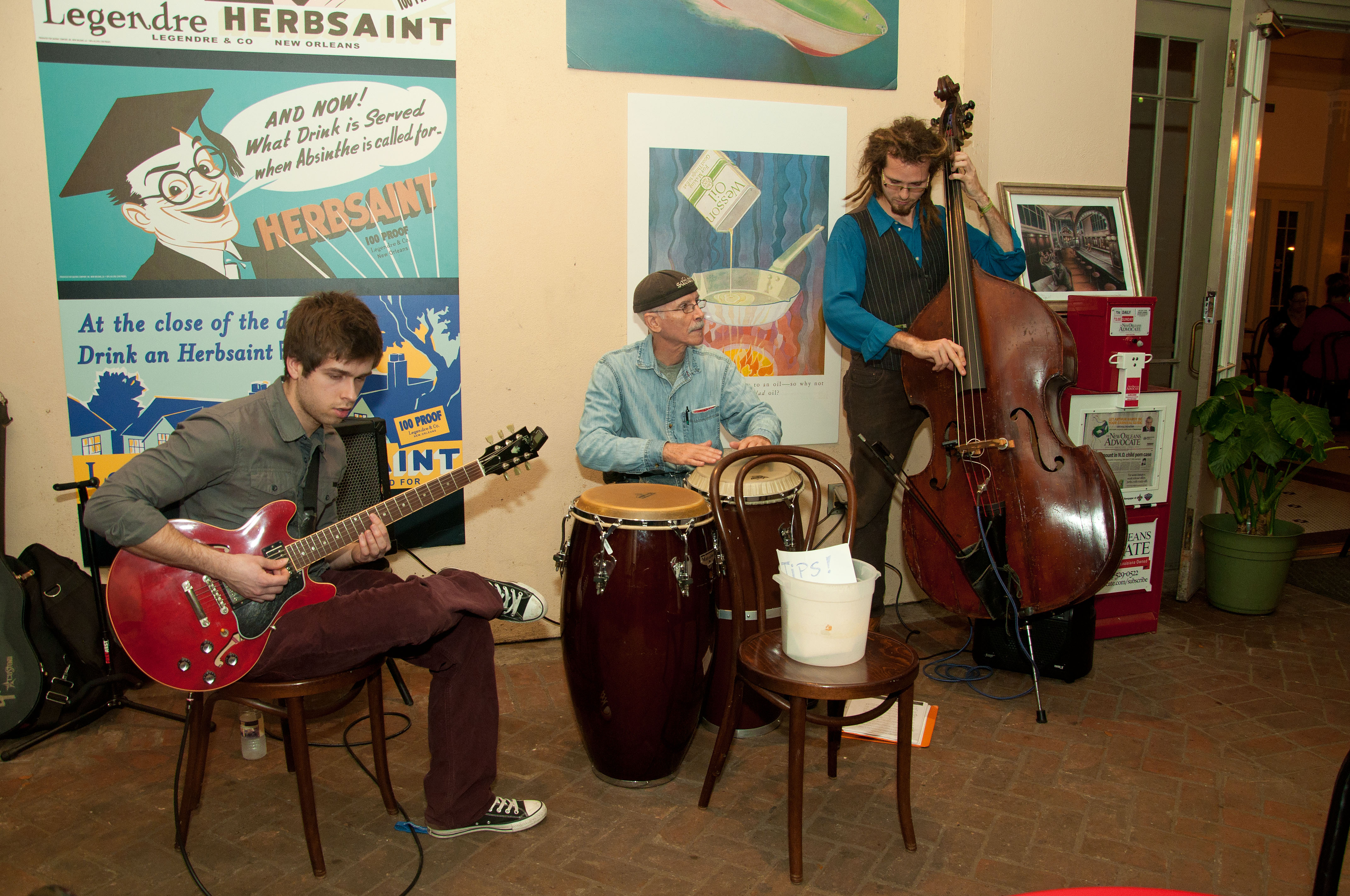 (2) Hector Gallardo’s Cuban Jazz Trio with illustrations of “Making New Orleans” by Phillip Collier